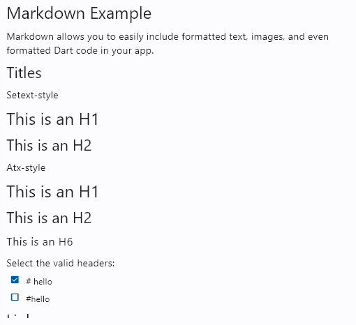 Markdown allows you to easily include formatted text, images, and even formatted Dart